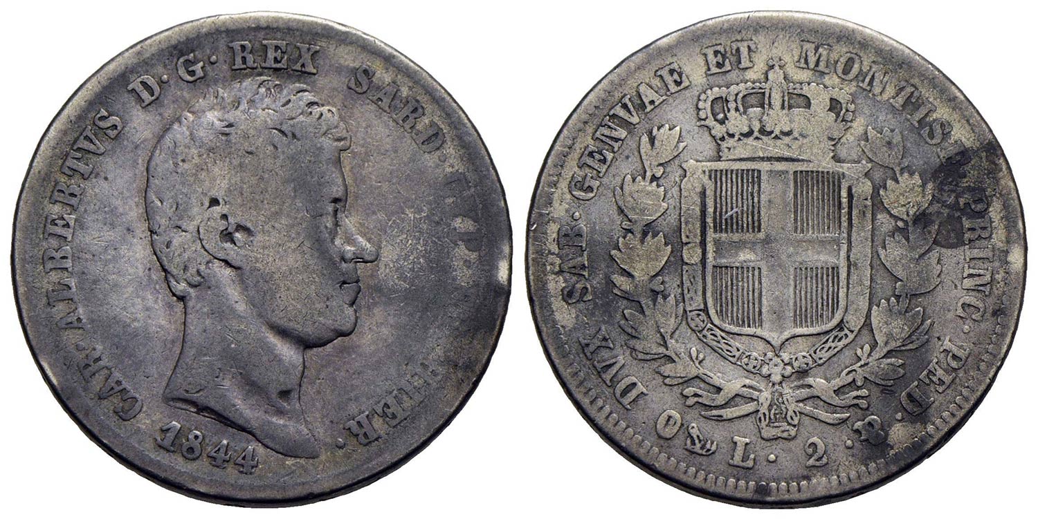 Carlo Alberto (1831-1849) - 2 Lire - 1844 G - AG RR Pag. 281; Mont. 157