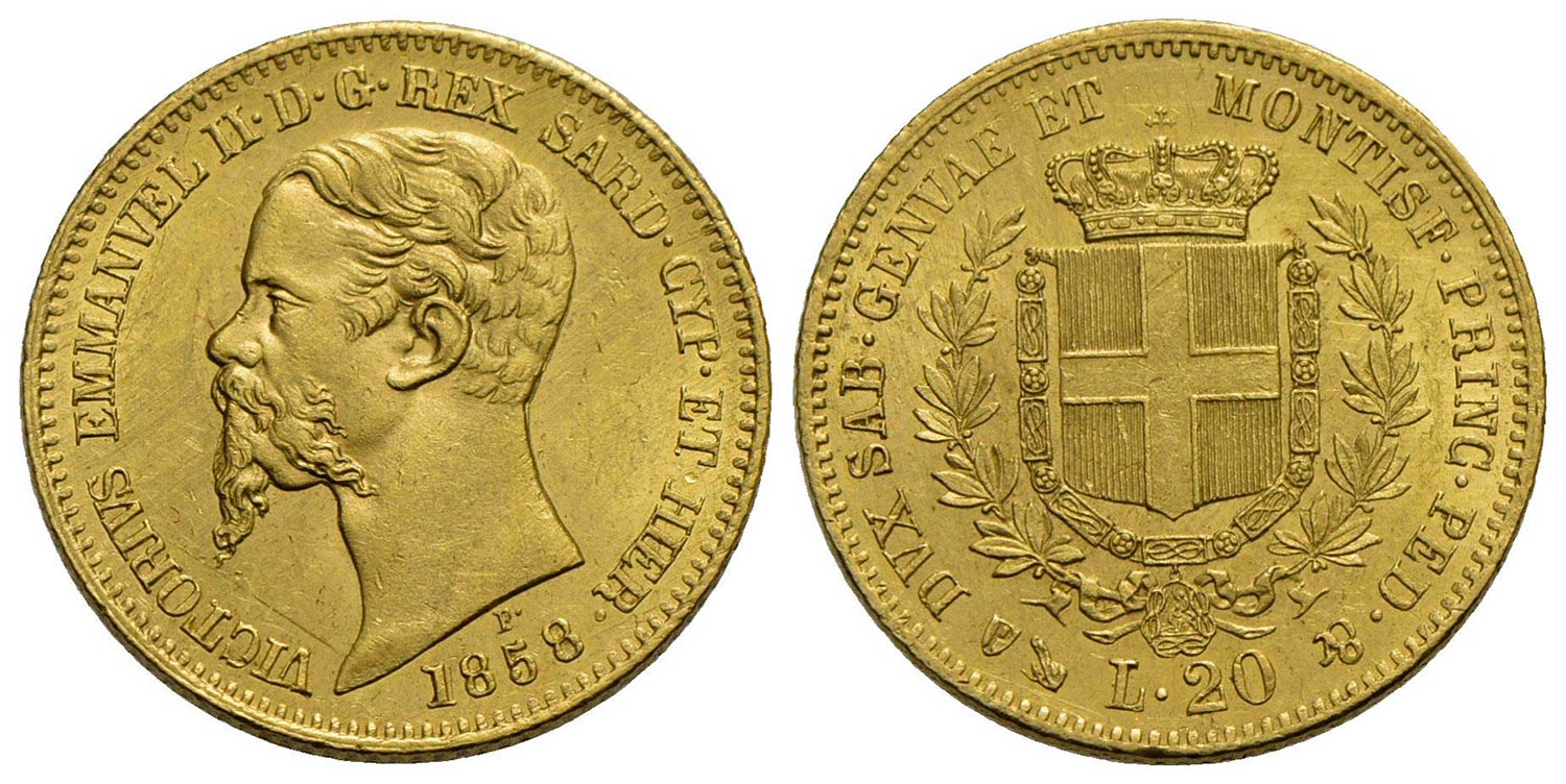 Vittorio Emanuele II (1849-1861) - 20 Lire - 1858 G - AU Pag. 352; Mont. 21