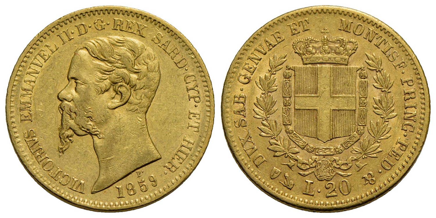 Vittorio Emanuele II (1849-1861) - 20 Lire - 1859 G - AU Pag. 354; Mont. 23<br>qSPL/SPL