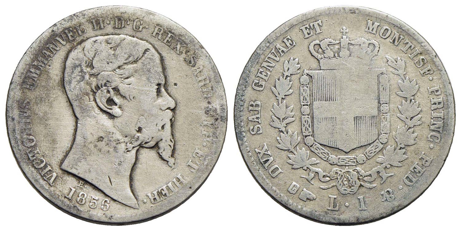 Vittorio Emanuele II (1849-1861) - Lira - 1856 T - AG R Pag. 409; Mont. 82<br>MB