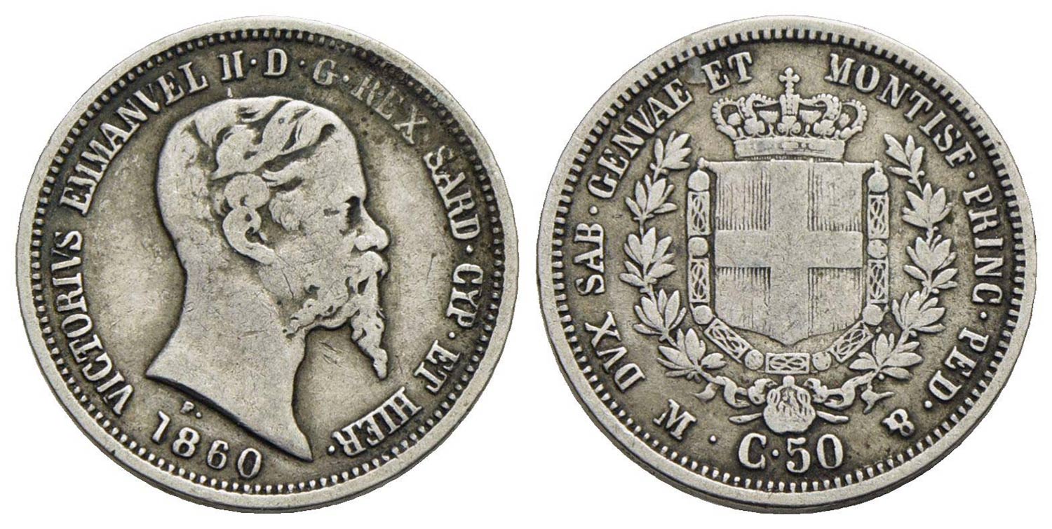 Vittorio Emanuele II (1849-1861) - 50 Centesimi - 1860 M - AG Pag. 427; Mont. 102<br>qBB