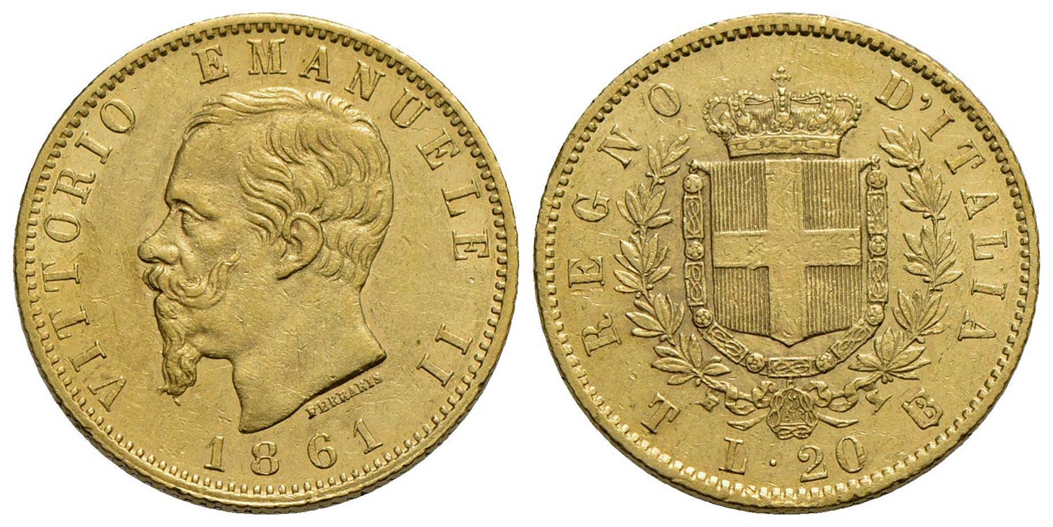 Vittorio Emanuele II Re d'Italia (1861-1878) - 20 Lire - 1861 T - AU R Pag. 455; Mont. 131<br>qSPL