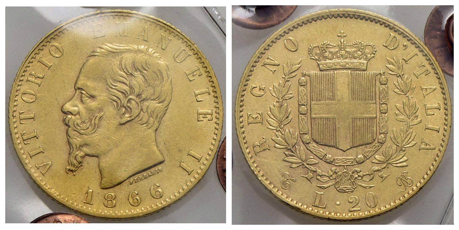 Vittorio Emanuele II Re d'Italia (1861-1878) - 20 Lire - 1866 T - AU R Pag. 460; Mont. 136 Periziata