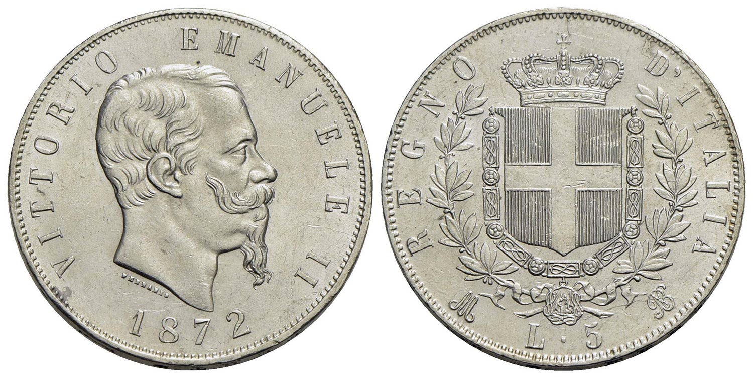 Vittorio Emanuele II Re d'Italia (1861-1878) - 5 Lire - 1872 M - AG Pag. 494; Mont. 177 Segnetti di