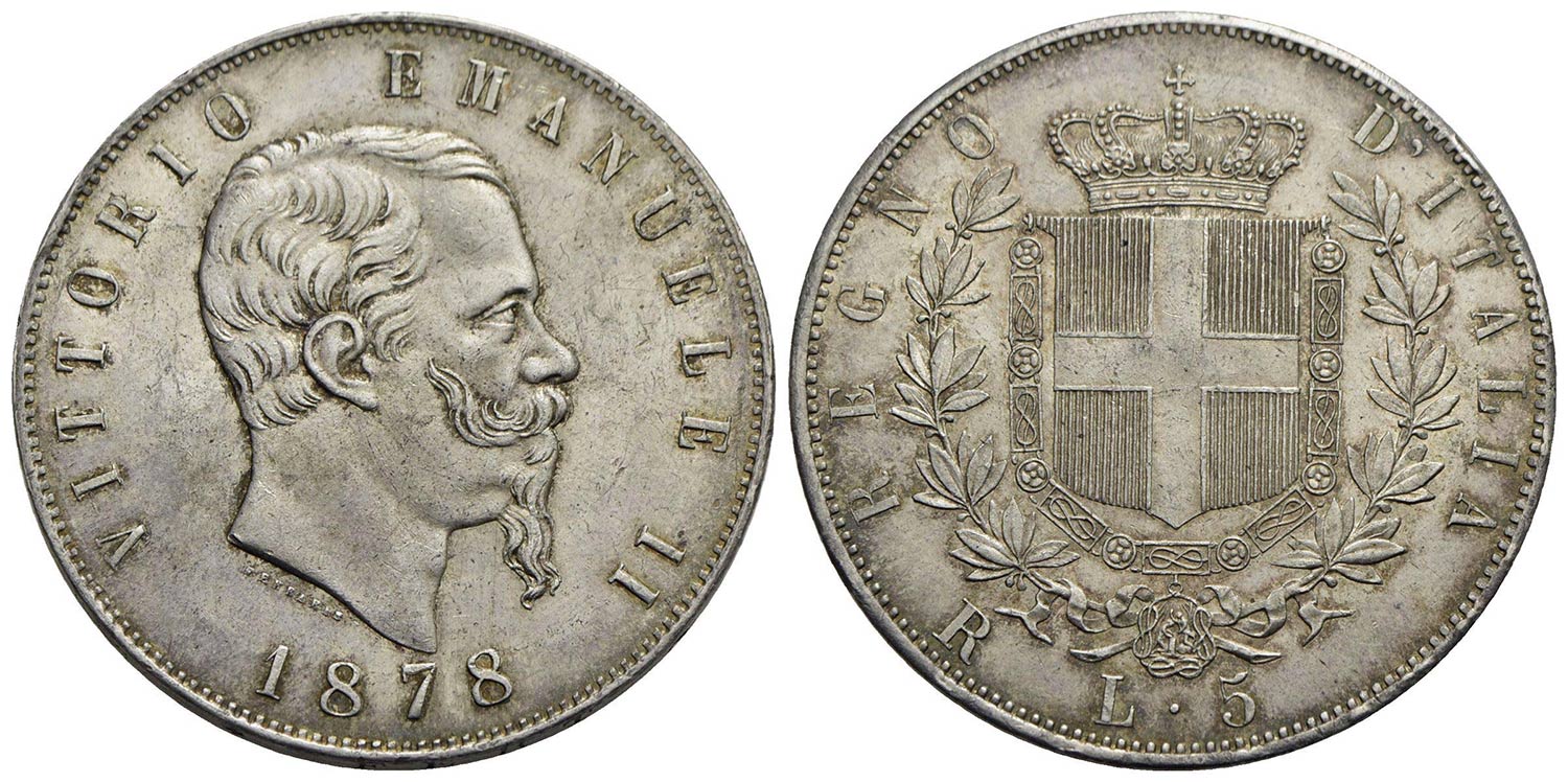 Vittorio Emanuele II Re d'Italia (1861-1878) - 5 Lire - 1878 R - AG Pag. 503; Mont. 191 Due colpetti