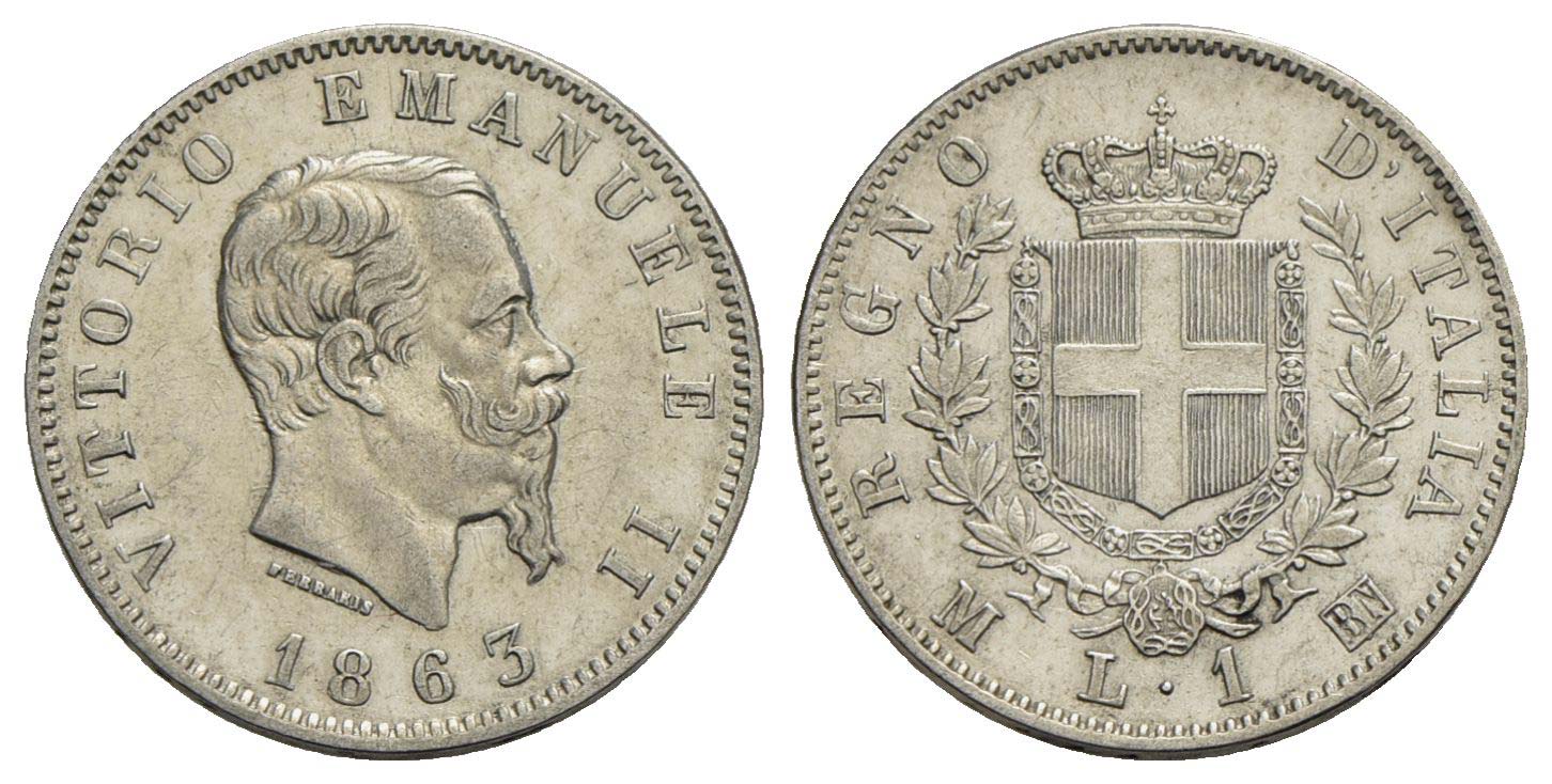 Vittorio Emanuele II Re d'Italia (1861-1878) - Lira - 1863 M Stemma - AG Pag. 514; Mont. 204