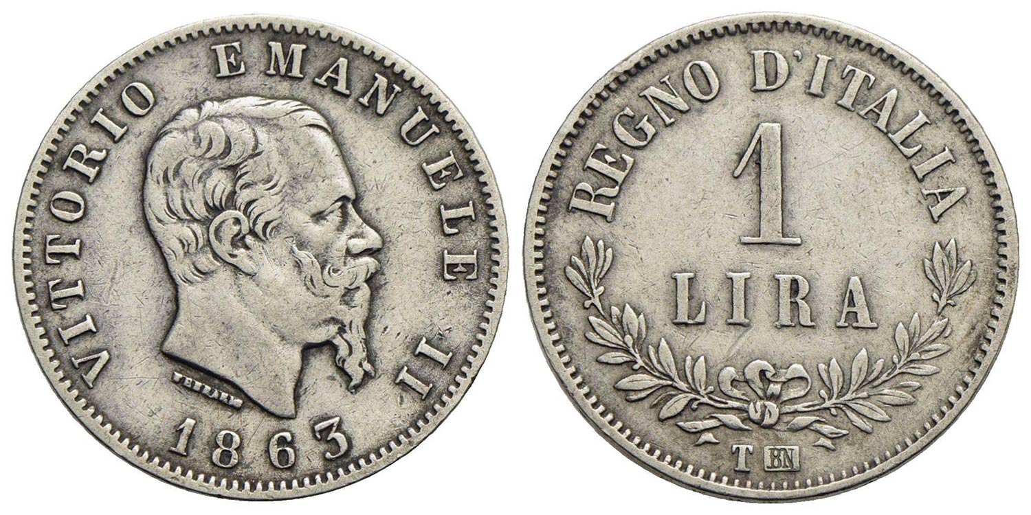 Vittorio Emanuele II Re d'Italia (1861-1878) - Lira - 1863 T Valore - AG RRR Pag. 517; Mont. 207 Con