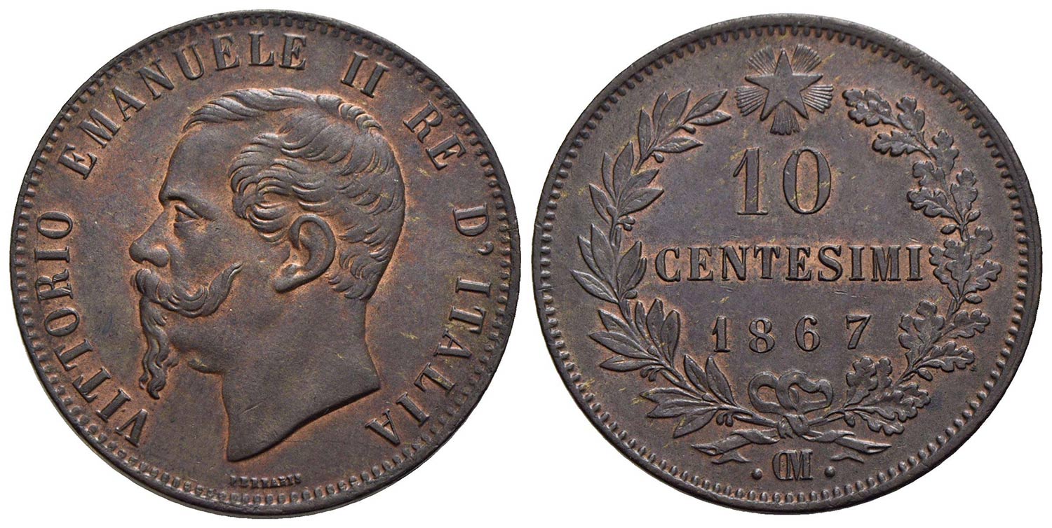 Vittorio Emanuele II Re d'Italia (1861-1878) - 10 Centesimi - 1867 .OM. - CU Pag. 550a; Mont. 243 Ra