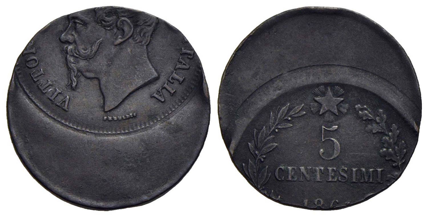 Vittorio Emanuele II Re d'Italia (1861-1878) - 5 Centesimi - 186 - CU RR Decentrato<br>qFDC