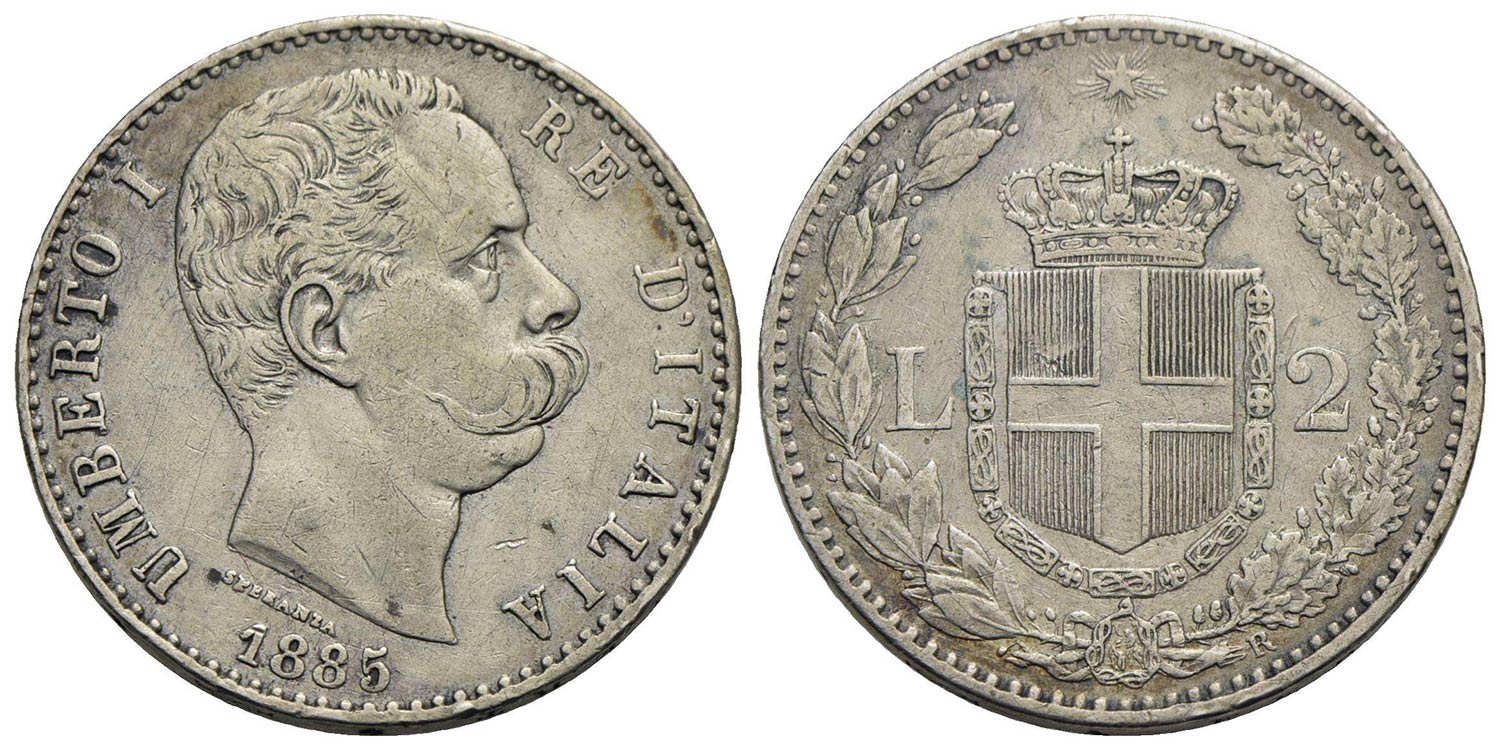 Umberto I (1878-1900) - 2 Lire - 1885 - AG R Pag. 595; Mont. 40<br>bel BB