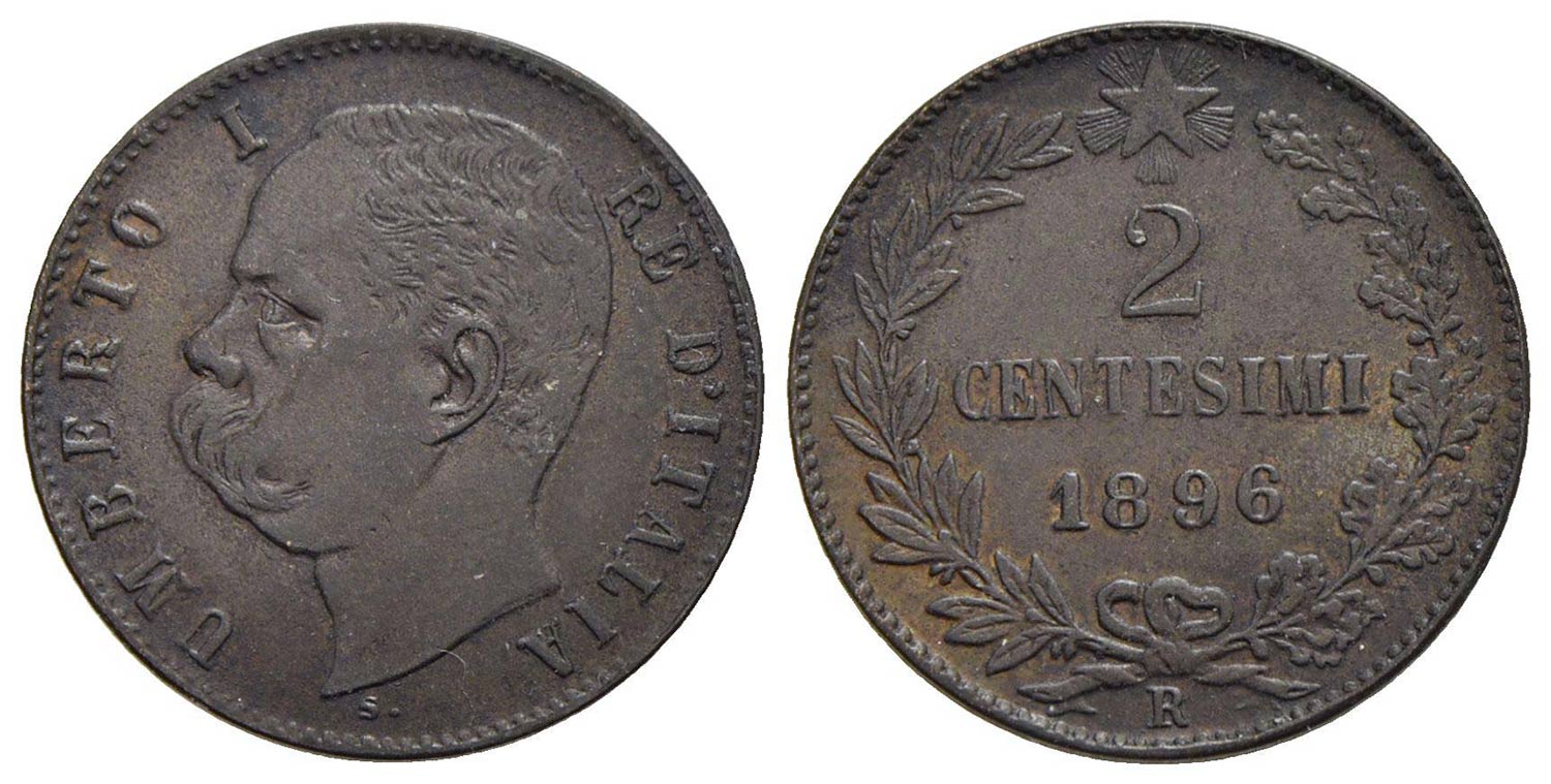 Umberto I (1878-1900) - 2 Centesimi - 1896 - CU RR Pag. 621; Mont. 69<br>SPL/SPL+