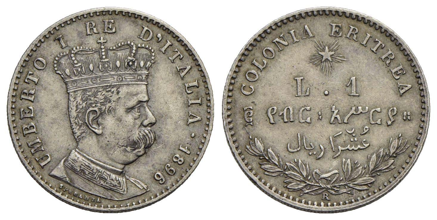 Eritrea - Lira - 1896 - AG RR Pag. 636; Mont. 86<br>BB-SPL