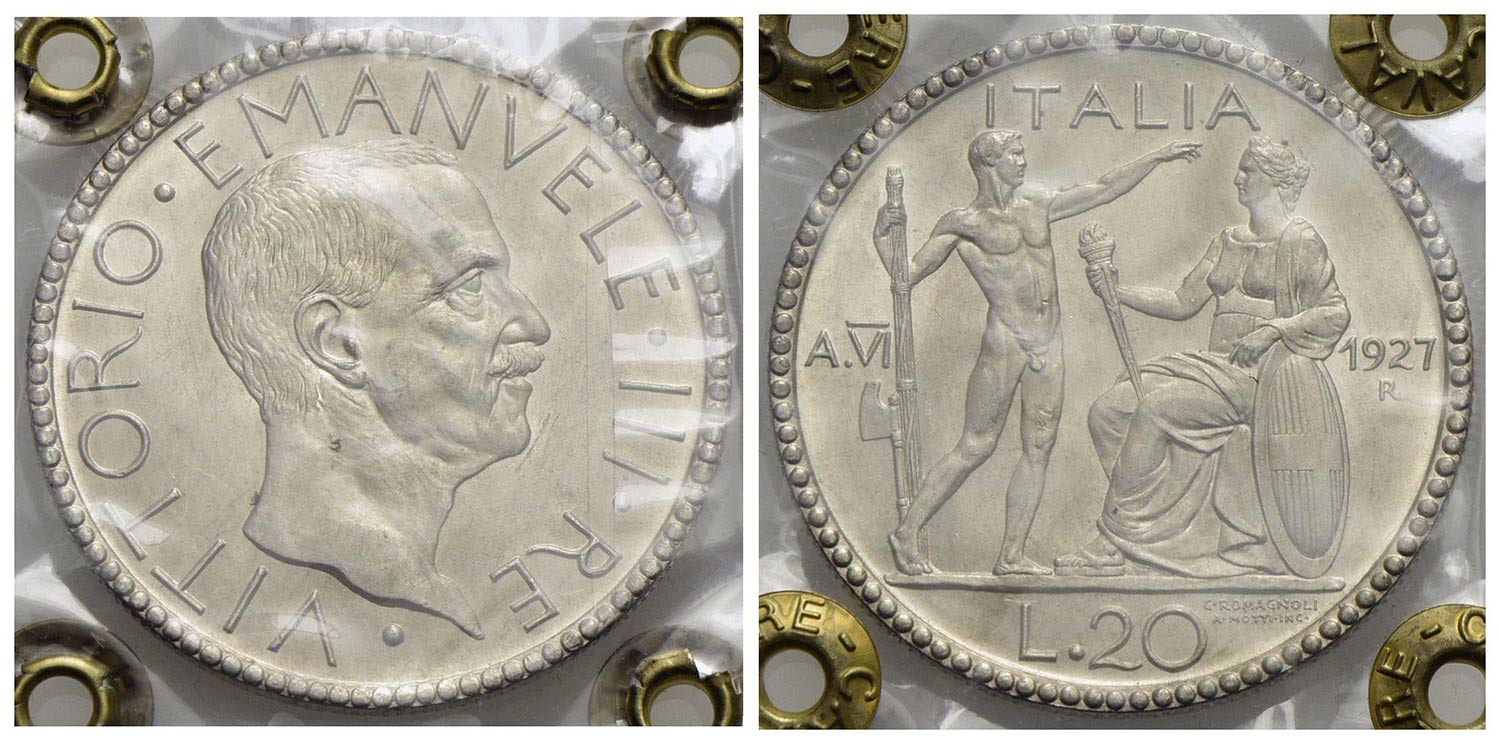 Vittorio Emanuele III (1900-1943) - 20 Lire - 1927 A VI Littore - AG Pag. 672; Mont. 65 Periziata Ca