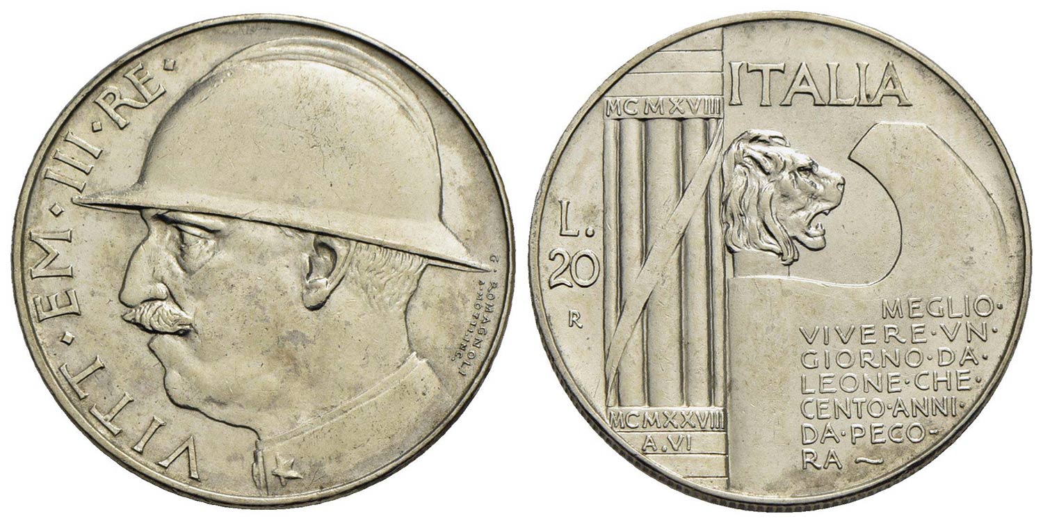 Vittorio Emanuele III (1900-1943) - 20 Lire - 1928 Elmetto - AG NC Pag. 680; Mont. 76