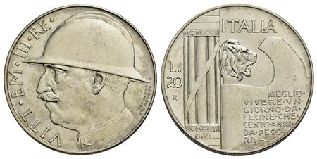 Vittorio Emanuele III (1900-1943) - 20 Lire - 1928 Elmetto - AG NC Pag. 680; Mont. 76<br>SPL-FDC