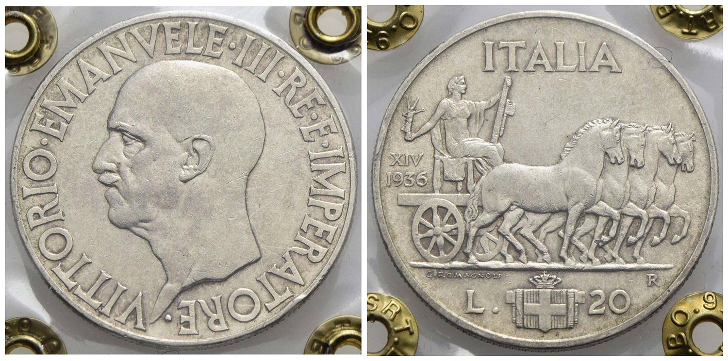 Vittorio Emanuele III (1900-1943) - 20 Lire - 1936 XIV Impero - AG R Pag. 681; Mont. 78 Colpettini -