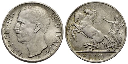 Vittorio Emanuele III (1900-1943) - 10 Lire - 1927 ** Biga - AG Pag. 692a; Mont. 90 Segnetti di contatto al D/