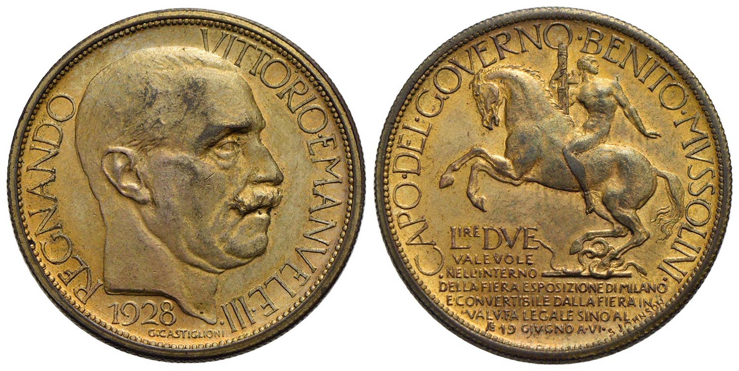 Vittorio Emanuele III (1900-1943) - 2 Lire - 1928 Fiera di Milano - Cu Pag. manca; Mont. 9