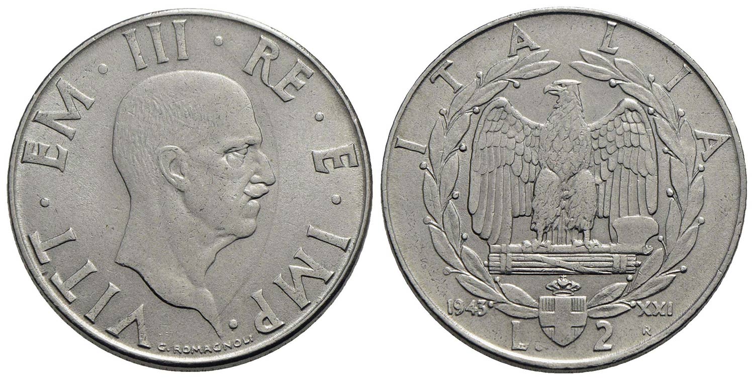 Lotto 1794 | Vittorio Emanuele III (1900-1943) - 2 Lire - 1943 XXI Impero - Ac R Pag. 762; Mont. 187 Segnettini<b