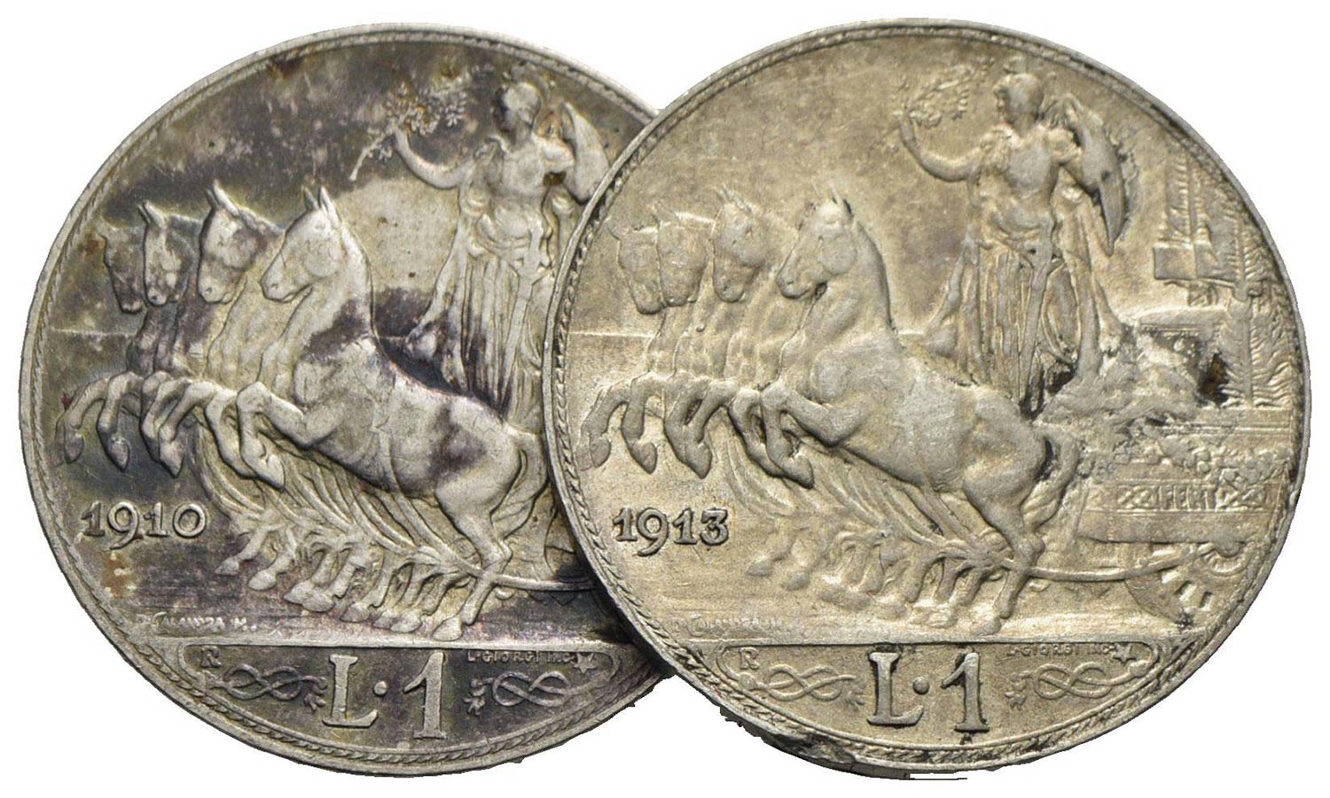 Vittorio Emanuele III (1900-1943) - Lira - 1910 Quadriga veloce - AG Pag. 770; Mont. 196 assieme a 1913 (BB+) - Lotto di due monete