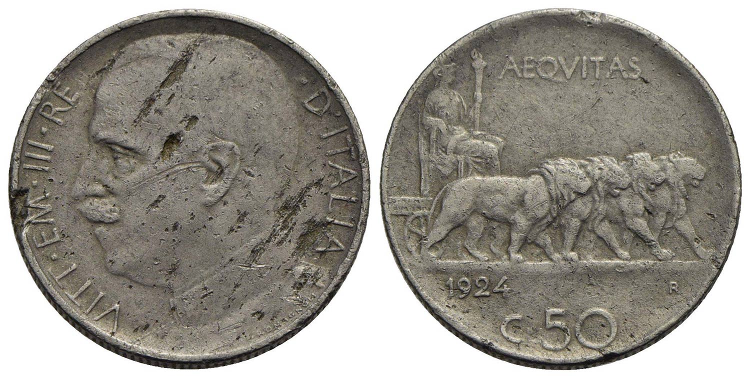 Lotto 1805 | Vittorio Emanuele III (1900-1943) - 50 Centesimi - 1924 R - NI RR Pag. 805; Mont. 242<br>MB/qBB