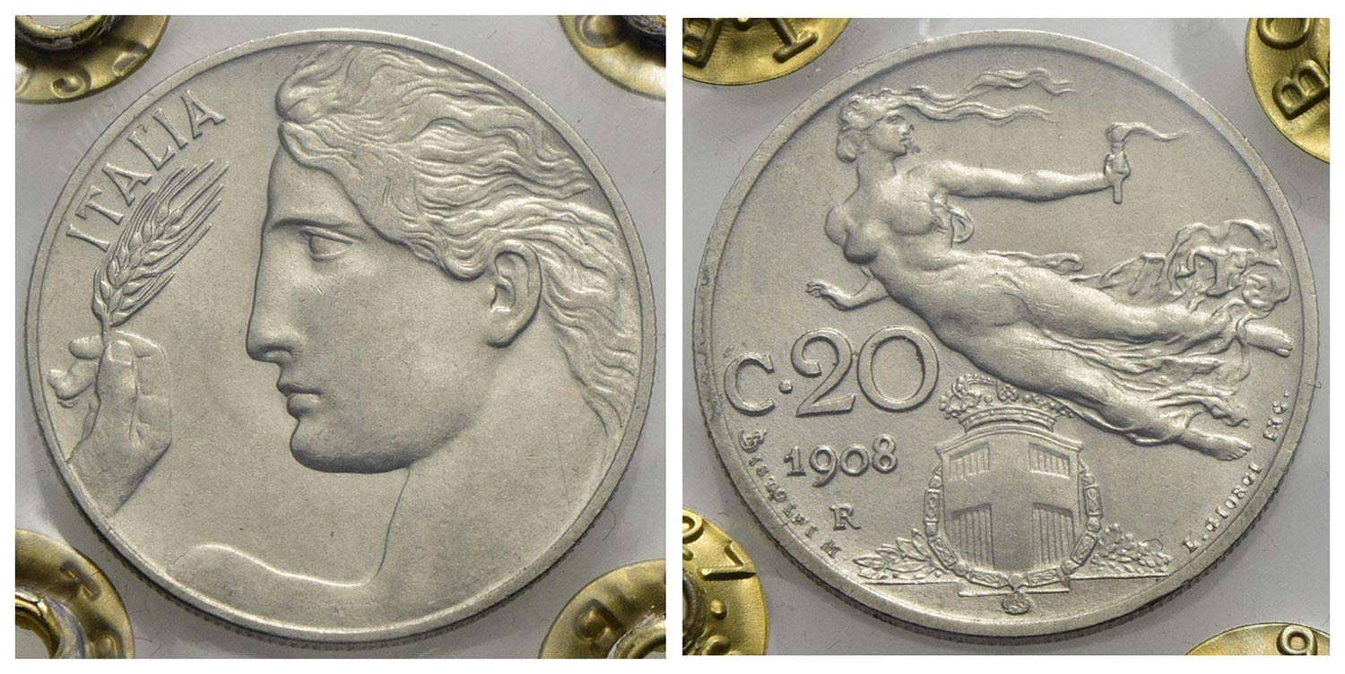 Vittorio Emanuele III (1900-1943) - 20 Centesimi - 1908 - NI Pag. 829; Mont. 276 Periziata Rocco di