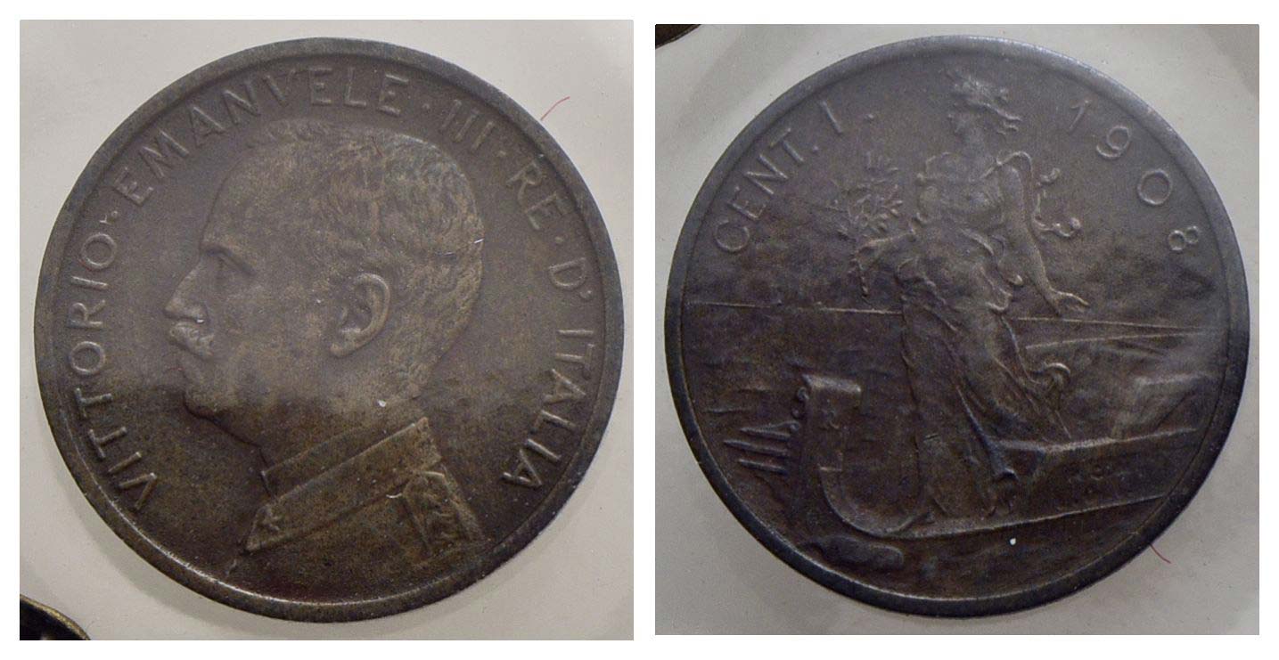 Lotto 1837 | Vittorio Emanuele III (1900-1943) - Centesimo - 1908 Prora - CU RR Pag. 945; Mont. 422 Periziata<br>