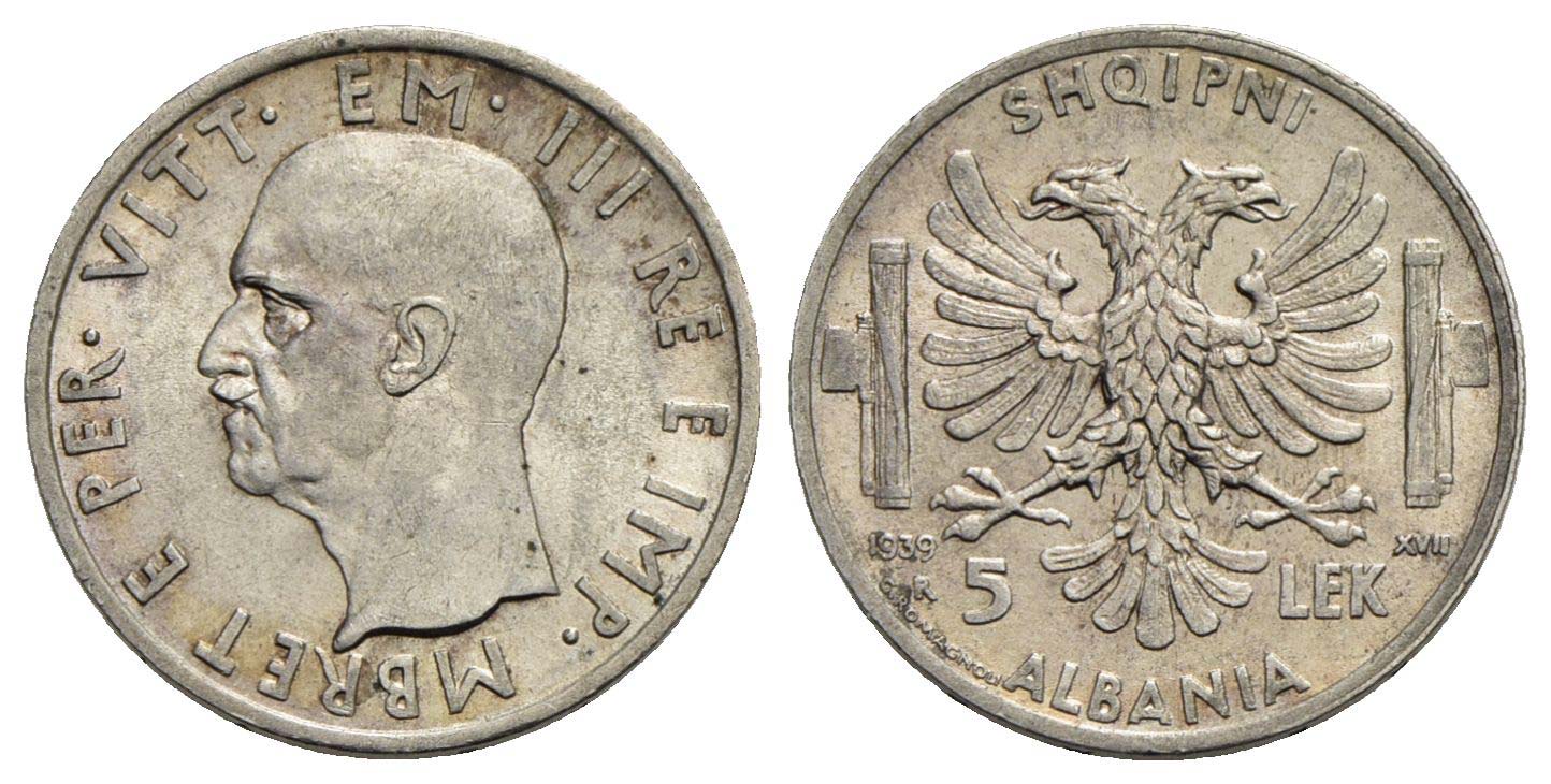 Albania - 5 Lek - 1939 XVII - AG Pag. 992; Mont. 485<br>qFDC