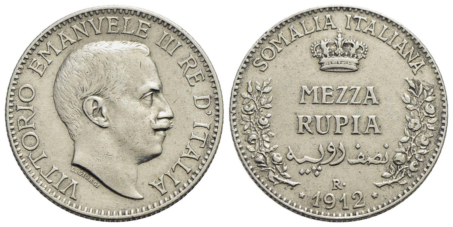Lotto 1857 | Somalia - Mezza Rupia - 1912 - AG R Pag. 967; Mont. 450<br>qSPL