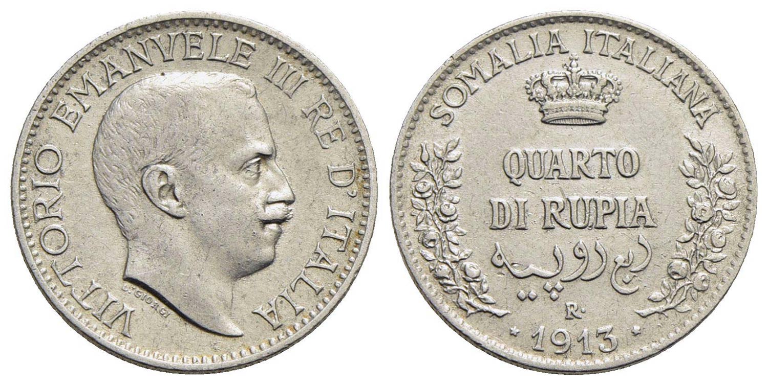 Somalia - Quarto di Rupia - 1913 - AG RR Pag. 972; Mont. 456<br>BB-SPL