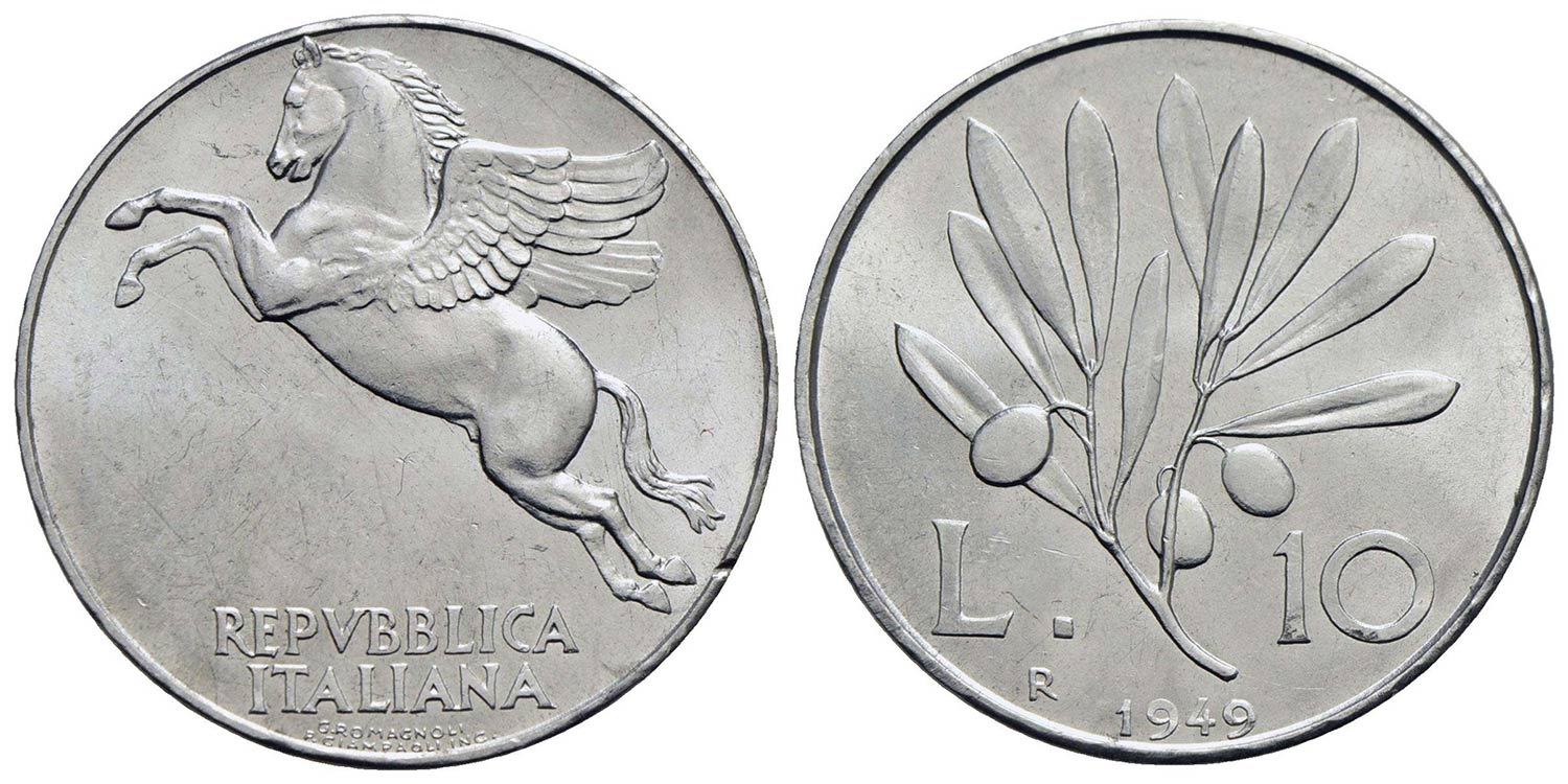 Lotto 1903 | Repubblica Italiana (emissioni in lire) (1946-2001) - 10 Lire - 1949 - IT Mont. 7 Segnetto al bordo