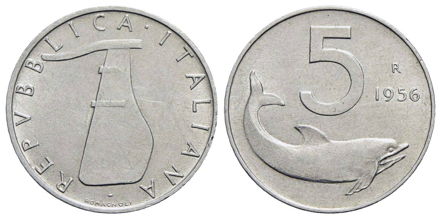 Lotto 1905 | Repubblica Italiana (emissioni in lire) (1946-2001) - 5 Lire - 1956 - IT RR Mont. 8<br>SPL