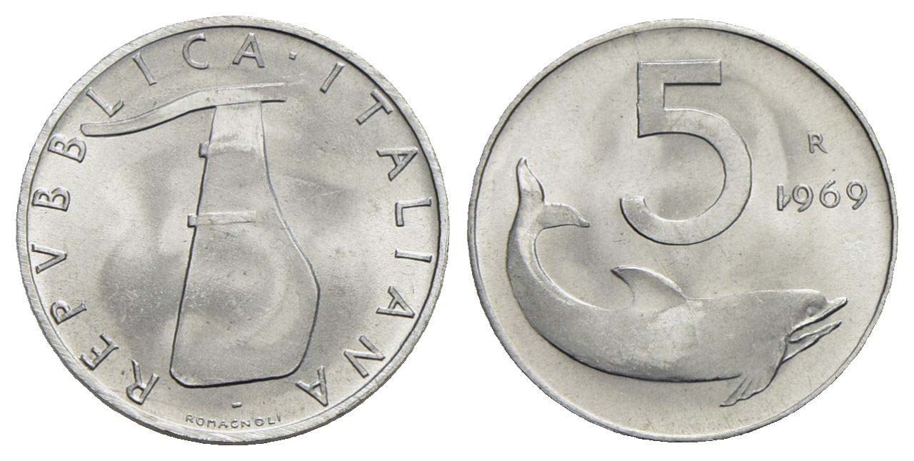 Repubblica Italiana (emissioni in lire) (1946-2001) - 5 Lire - 1969 - IT NC Mont. 15 1 della data ro