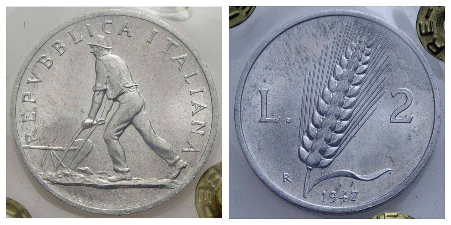 Lotto 1910 | Repubblica Italiana (emissioni in lire) (1946-2001) - 2 Lire - 1947 - IT RRR Mont. 4 Periziata Tever