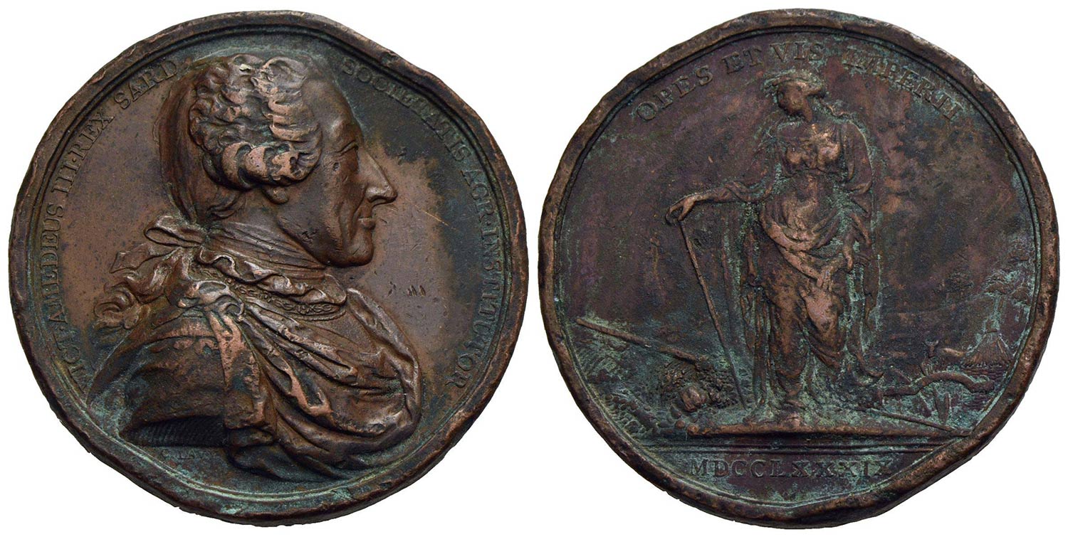 SAVOIA - Vittorio Amedeo III (1773-1796) - Medaglia - 1789 - Società l'agricoltura - Busto a d. - R/