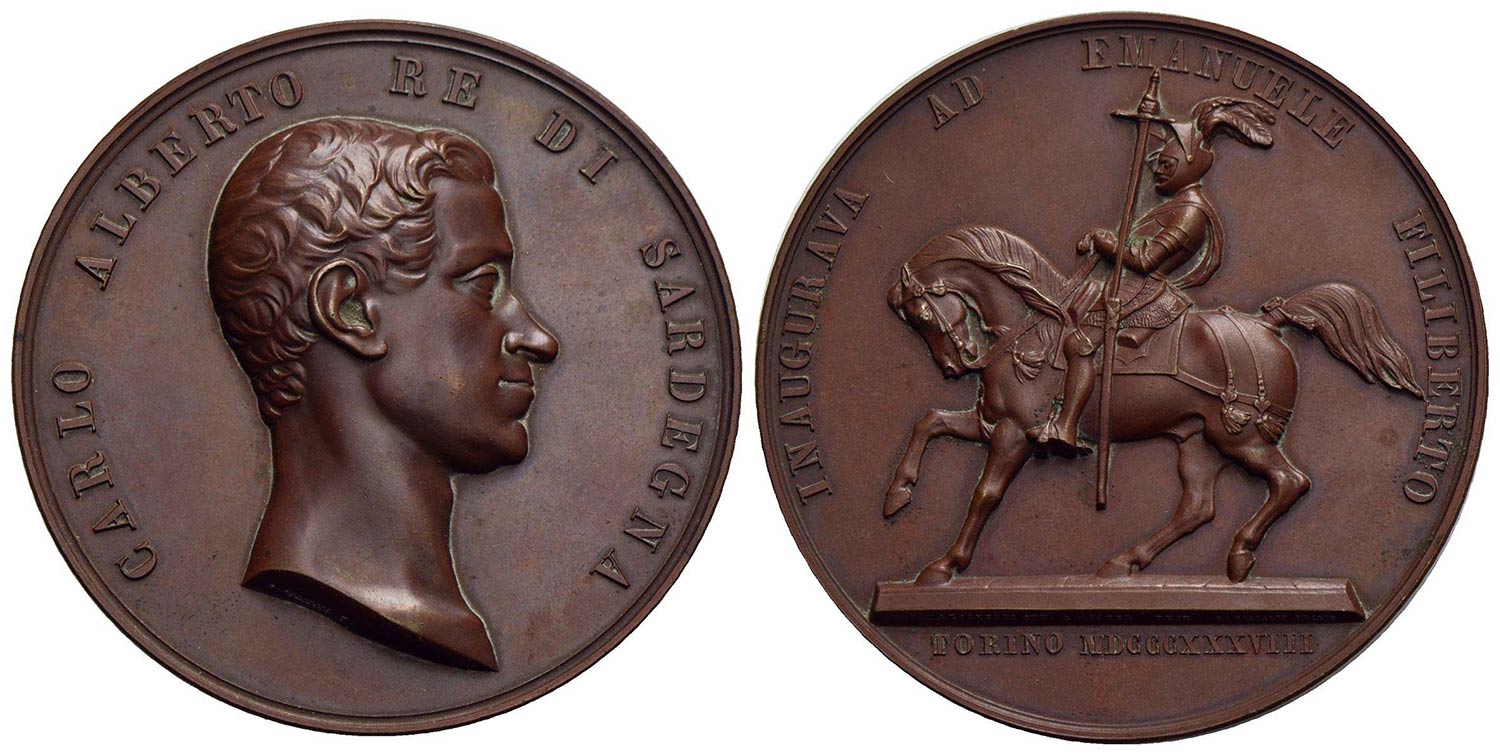SAVOIA - Carlo Alberto (1831-1849) - Medaglia - 1838 - Inaugurazione del monumento a Emanuele Filiberto - Busto a d. - R/ Statua equestre di Emanuele Filiberto Opus: Galeazzi Ø: 72 mm. - (AE g. 232,8) Martini 1698