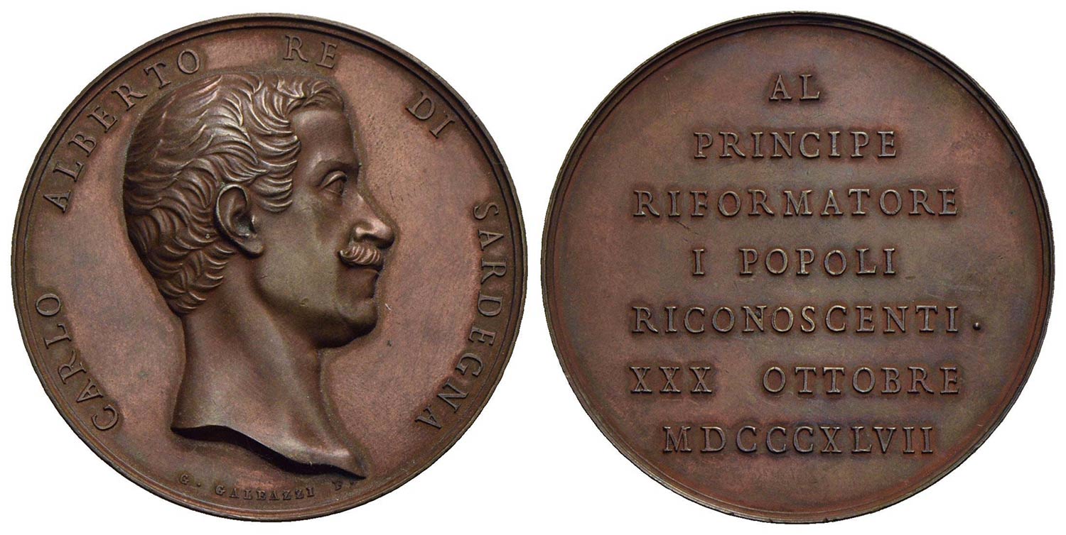 SAVOIA - Carlo Alberto (1831-1849) - Medaglia - 1847 - Al principe riformatore - Busto a d. - R/ Scritta Opus: Galeazzi Ø: 50 mm. - (AE g. 71,1) Mart. 1751