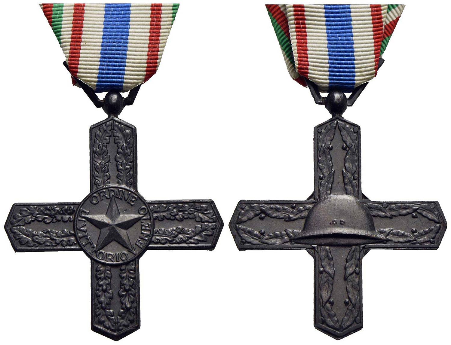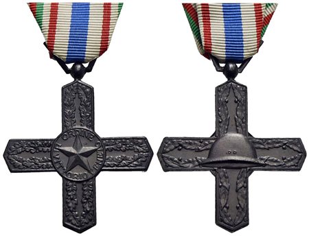 SAVOIA - Vittorio Emanuele III (1900-1943) - Croce - Cavaliere dell'ordine di Vittorio Veneto - AE Nastro tricolore e banda centrale blu