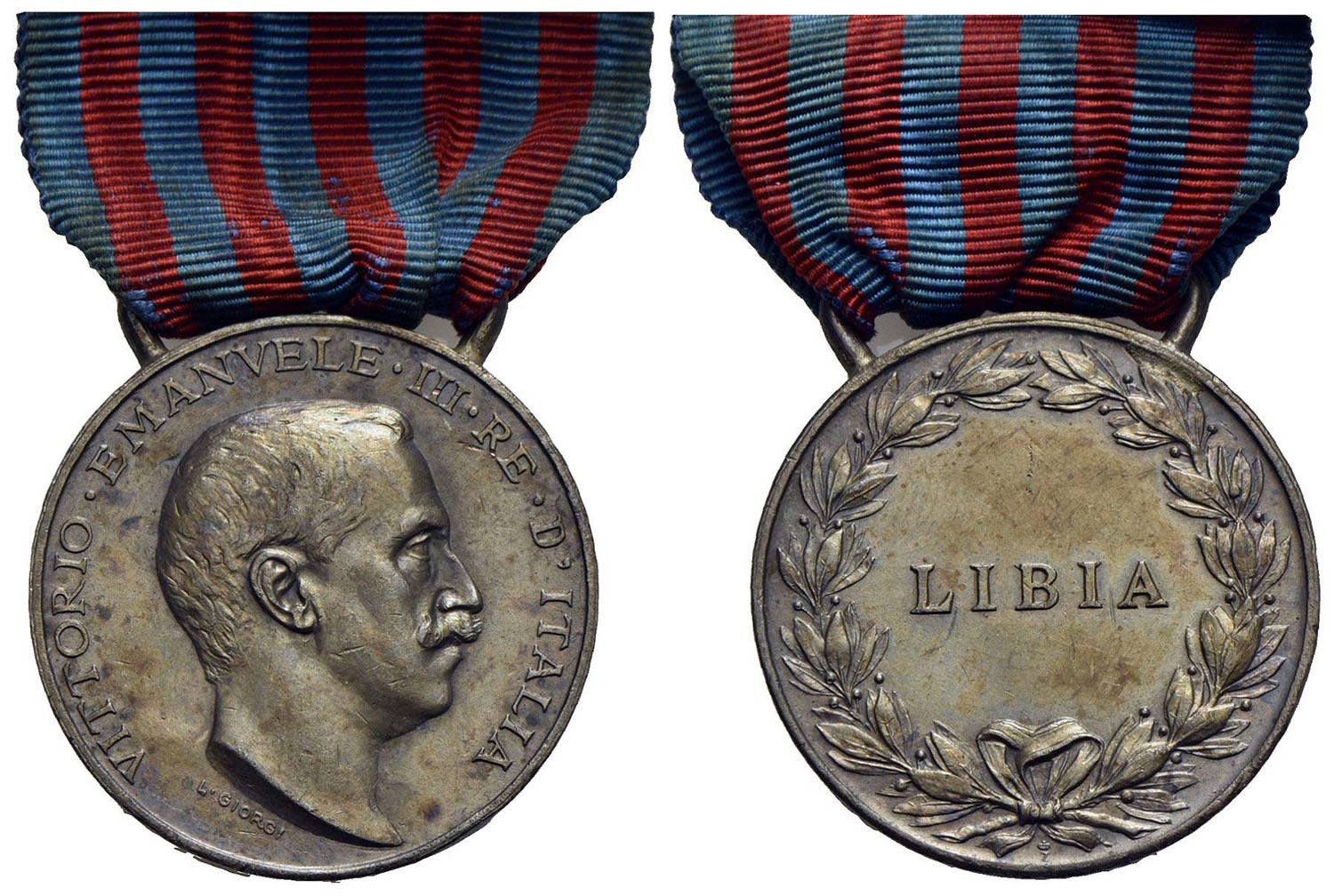 SAVOIA - Vittorio Emanuele III (1900-1943) - Medaglia - Campagna di Libia - Testa a d. - R/ LIBIA Opus: L. Giorgi Ø: 32 mm. - MB Nastrino rosso-azzurro in scatola