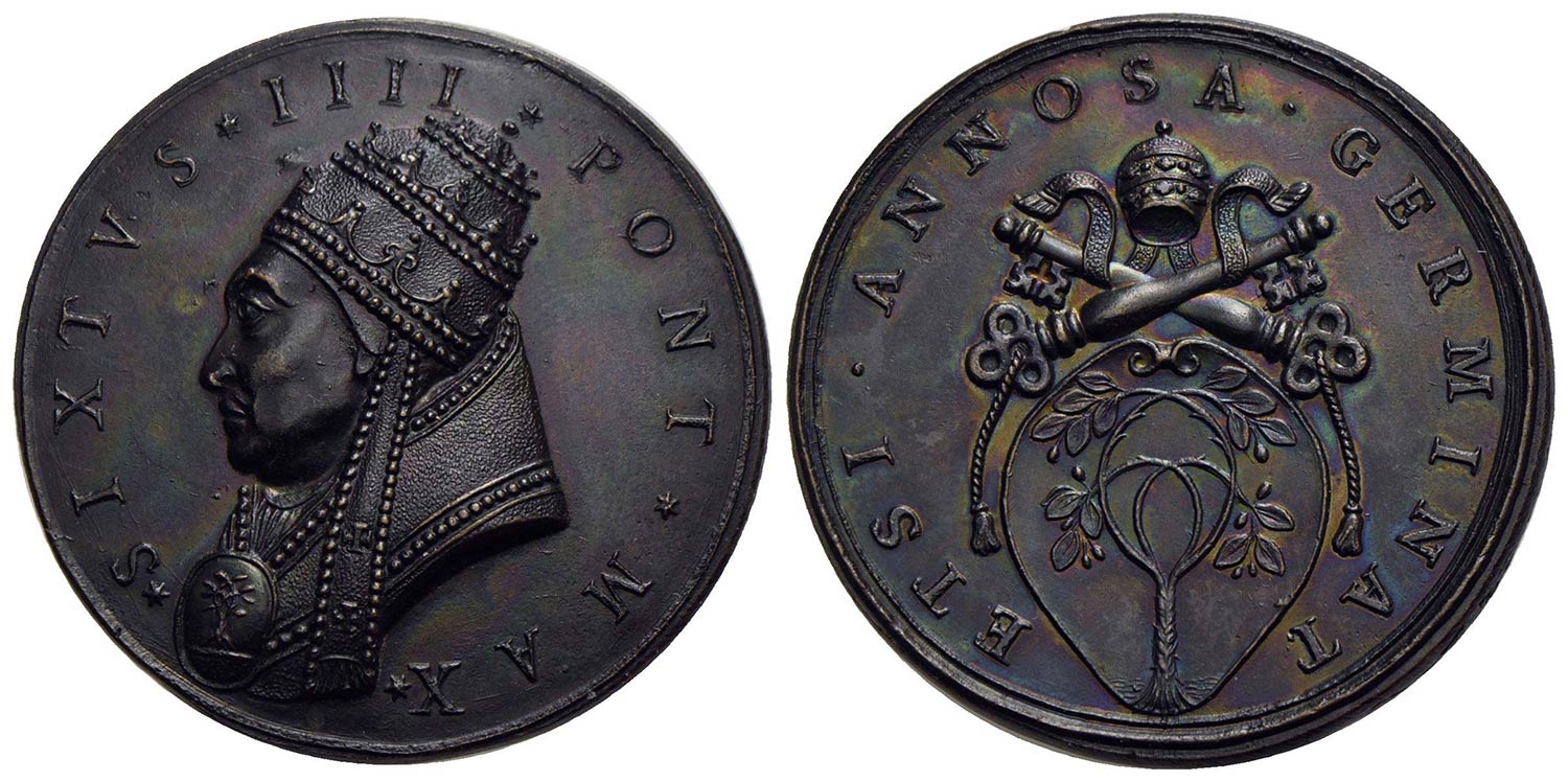 PAPALI - Sisto IV (1471-1484) - Medaglia - Busto con piviale e triregno a s. - R/ Stemma Della Rovere sormontato da triregno e chiavi Opus: Paladino Ø: 44 mm. - (AE g. 45,9) R Mod. 142/144