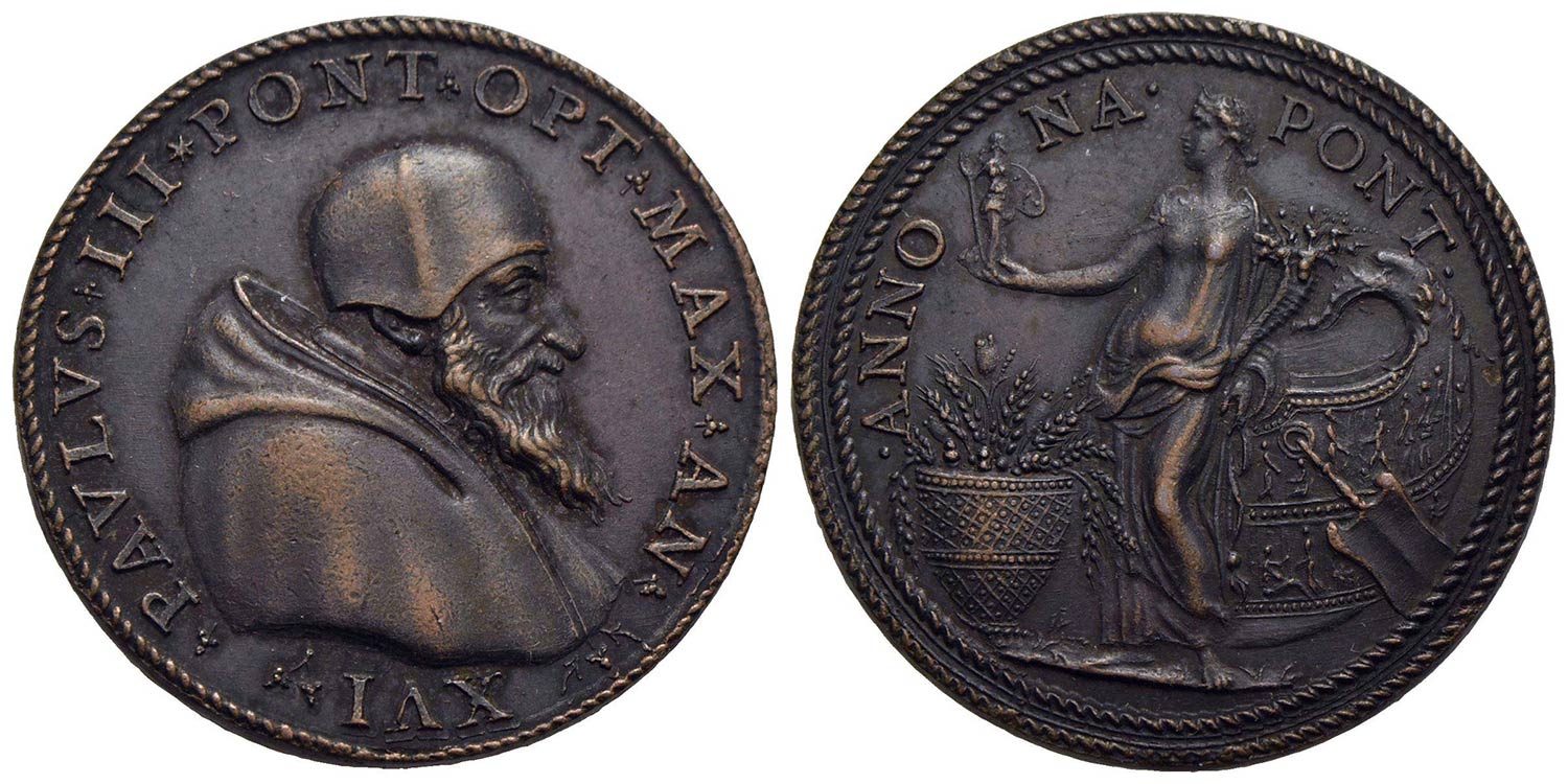 PAPALI - Paolo III (1534-1549) - Medaglia - A. XVI - L'Annona - Busto a d. con camauro e mozzetta - R/ L'Annona Opus: Cesati Ø: 32 mm. - (AE g. 20) Mod. 359