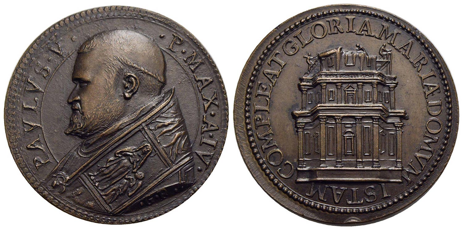 PAPALI - Paolo V (1605-1621) - Medaglia - 1608 - A. IV Cappella Paolina Santa Maria Maggiore - Busto a s. con piviale - R/ Prospetto cappella incompiuta nella cupola Opus: G. Rancetti Ø: 33 mm. - (AE g. 20,58) NC Riconio Mazio, per il R/ utilizzato un conio dell'Hamerani