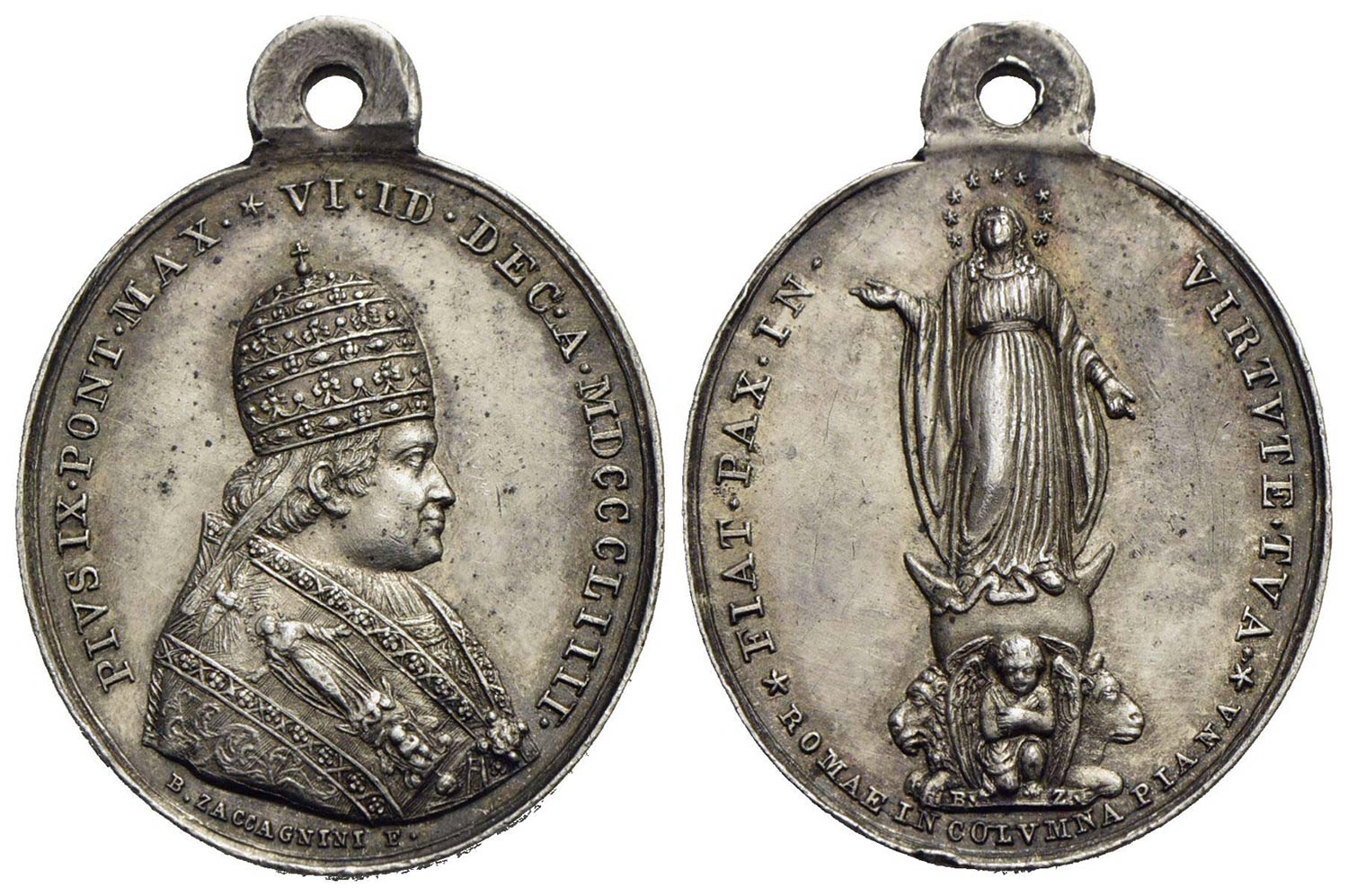 PAPALI - Pio IX (1846-1866) - Medaglia - 1854 - Busto con triregno a d. - R/ Fiat pax in virtute tua Opus: Zaccagnini - (AG g. 6,18) Ovale mm. 25x22 con appiccagnolo