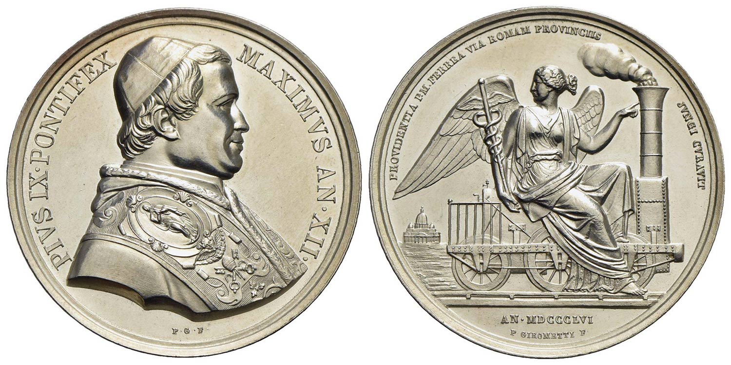 PAPALI - Pio IX (1846-1866) - Medaglia - A. XII - (AG g. 34,9) RRR Mont. 44