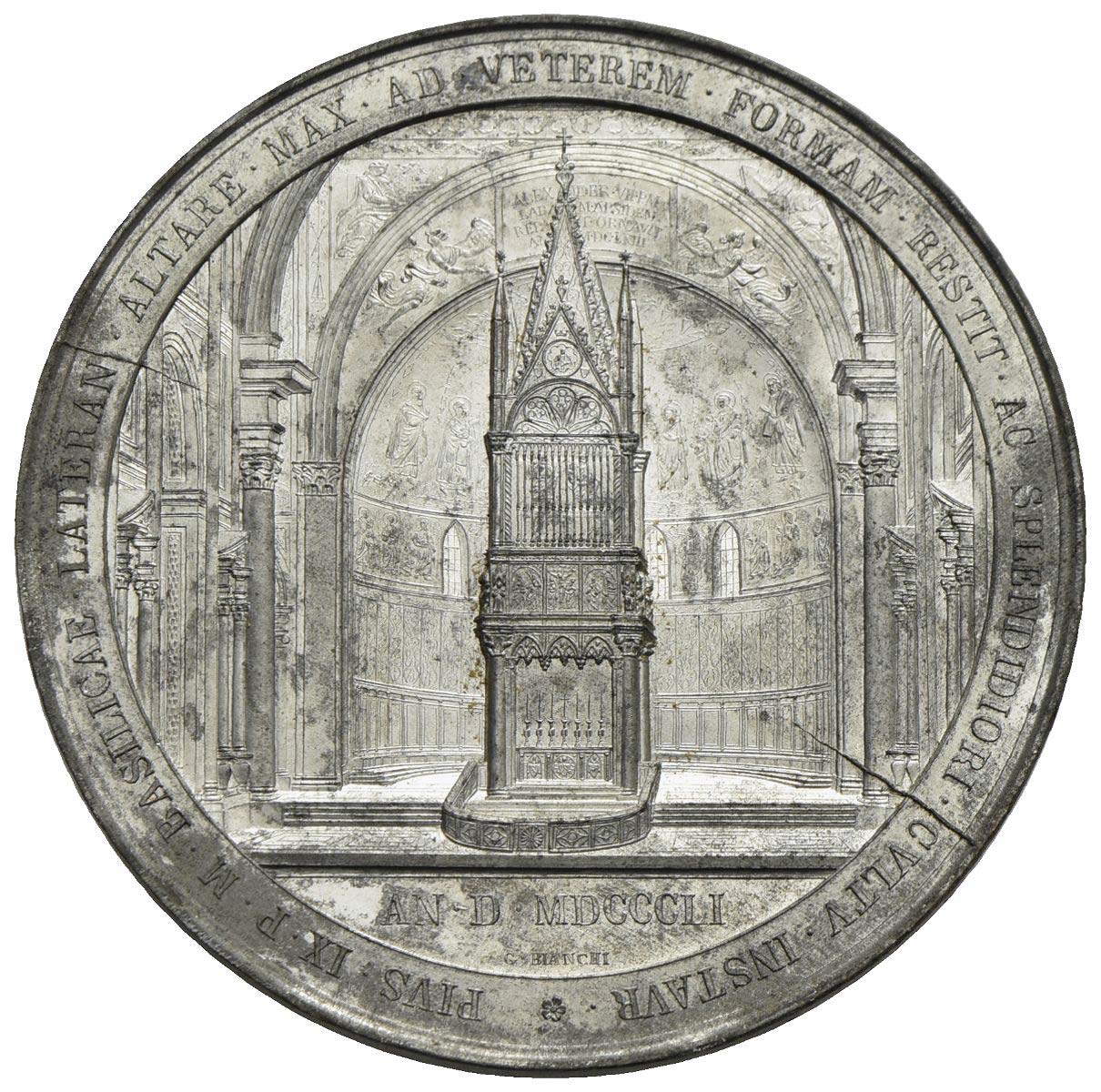 PAPALI - Pio IX (1846-1866) - Medaglia - 1851 - Restaurazione dell'altare papale a San Giovanni in Laterano - Altare in San Giovanni in Laterano Opus: Bianchi Ø: 80 mm. - AE arg. Uniface Colpetti al bordo