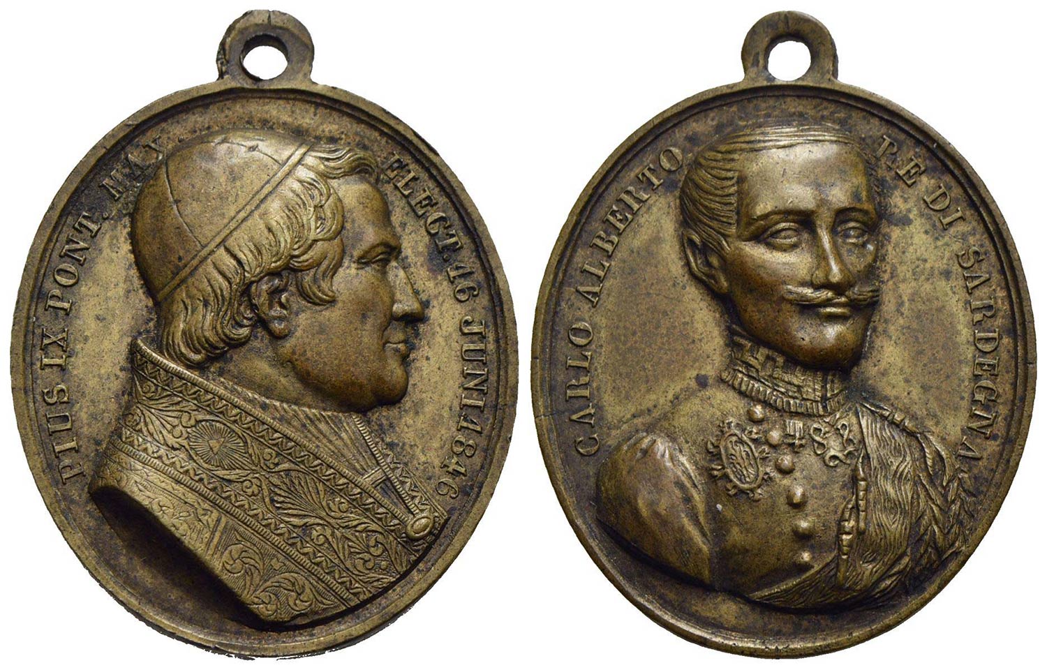 PAPALI - Pio IX (1846-1866) - Medaglia - 1846 - Elezione al pontificato (16 giugno) - Busto a d. - R/ Busto di Carlo Alberto re di Sardegna - AE Ovale mm. 31 x 28