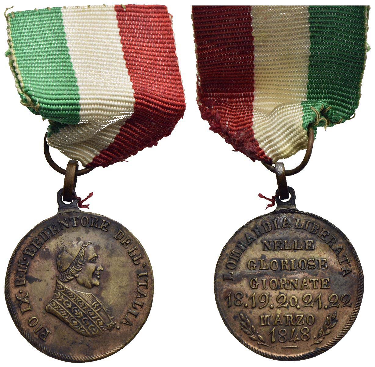 PAPALI - Pio IX (1846-1866) - Medaglia - 1848 - Lombarda liberata - Busto a d. - R/ Scritta e date Ø: 27 mm. - AE RR Bart. II-25 Con appiccagnolo e anella e nastrino tricolore