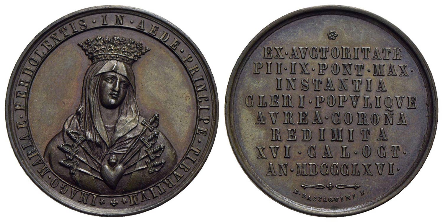 PAPALI - Pio IX (1846-1866) - Medaglia - 1866 - Incoronazione B.V. di Tivoli - Busto della B.V. di f