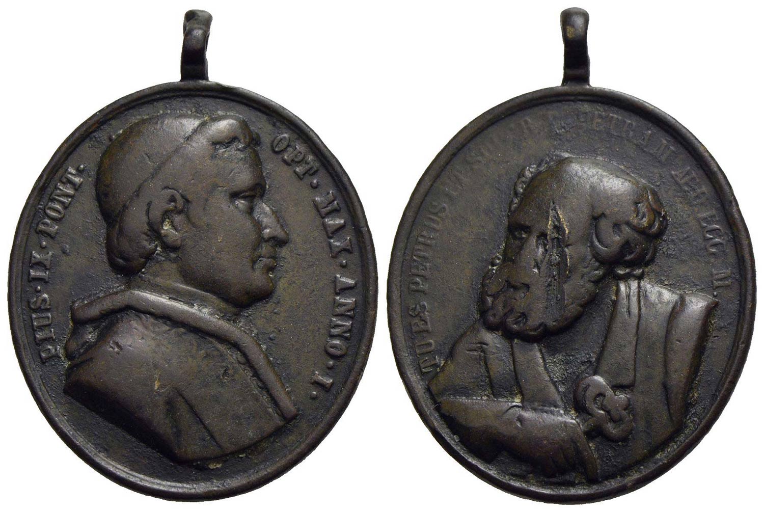 PAPALI - Pio IX (1846-1866) - Medaglia - A. I - Busto a d. - R/ Busto di S. Pietro a s. - AE Ovale mm. 32x28