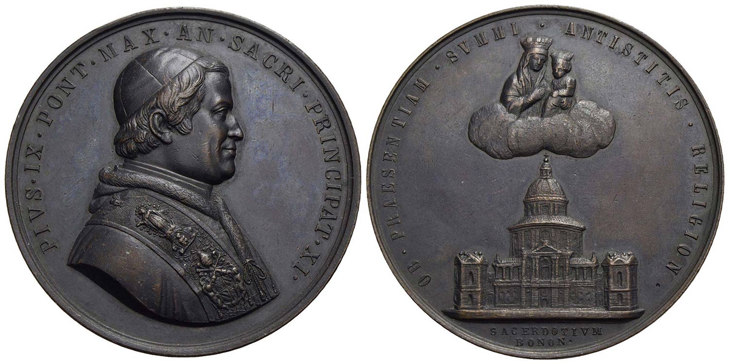 PAPALI - Pio IX (1846-1866) - Medaglia - A. XI - Visita al santuario di San Luca a Bologna - Busto a